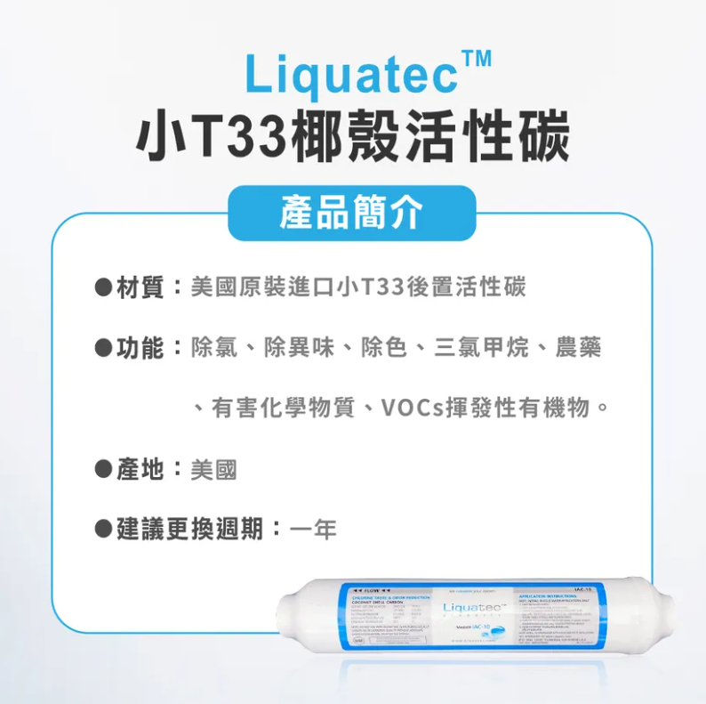 美國LIQUATEC後置小T-椰殼活性碳濾芯