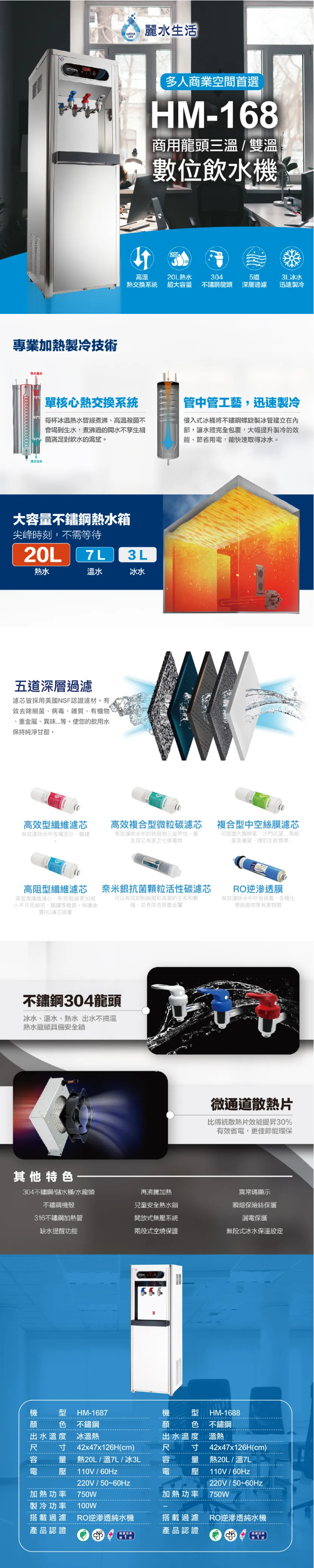 - 產品容量: 熱水20公升 / 溫水7公升