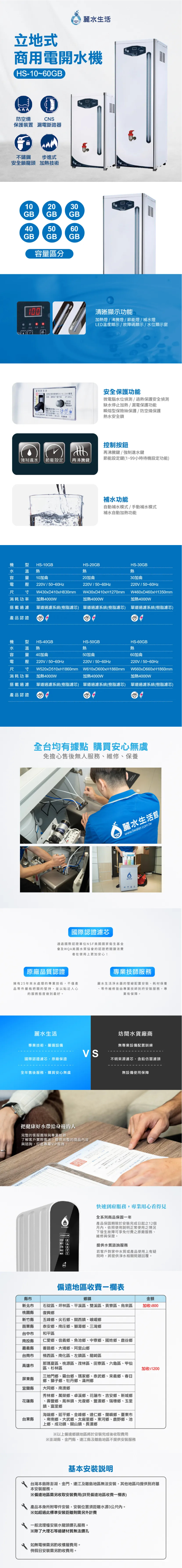 豪星 HAOHSING HS-10~60加侖貯備型電開水機
