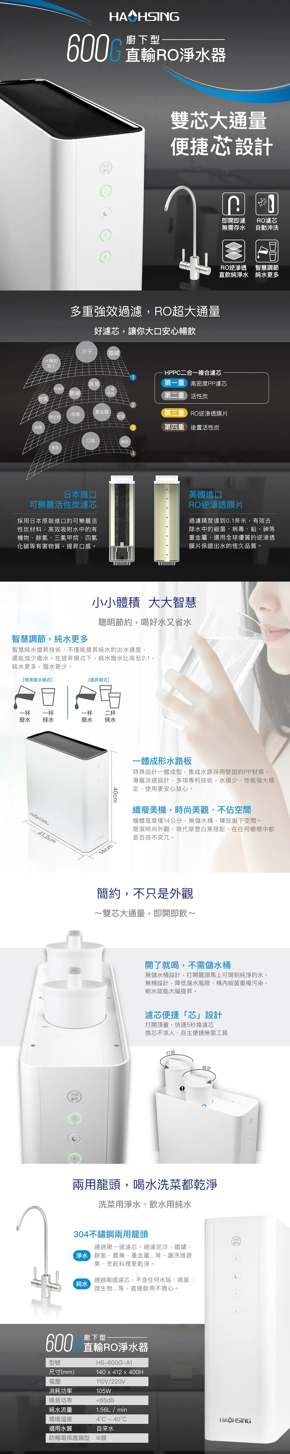 首頁/淨水產品/豪星 HAOHSING HS-600G 廚下直輸RO淨水器