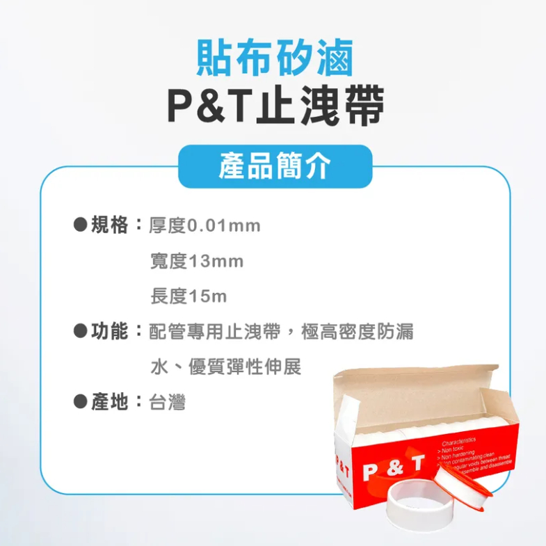 首頁/淨水產品/通用止水帶-P&T(貼布矽滷) 🔍 通用止水帶-P&T(貼布矽滷)NT$20 – NT$150價格範圍:NT$20 到 NT$150 品名:P&T 止洩帶 規格:厚度0.01cm、寬度1.3cm、長度1500cm 功能:配管專用止洩帶,極高密度防漏水,優質彈性伸展 產地:台灣製造 規格 請選取一個選項通用止水帶P&T-單入通用止水帶P&T-盒裝(10入)清除 通用止水帶-P&T(貼布矽滷) 數量 加入購物車 描述 相關商品 【EVERPOLL愛科濾淨】桌上型智慧飲水機 RO-115AI NT$13,800 LED-UV滅菌器(UVC-902) NT$11,800 AHP-300 專用濾芯(AHP-030) NT$5,800 純淨沐浴器專用濾芯(GS-680F) NT$2,950