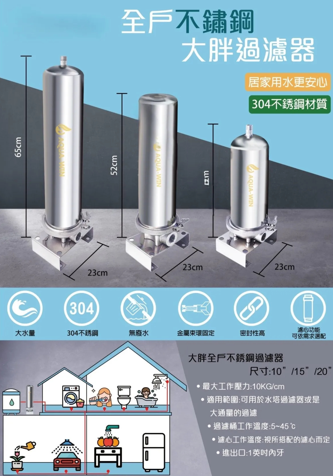 Aqua-Win水精靈 10吋BB 大胖全戶不銹鋼過濾器