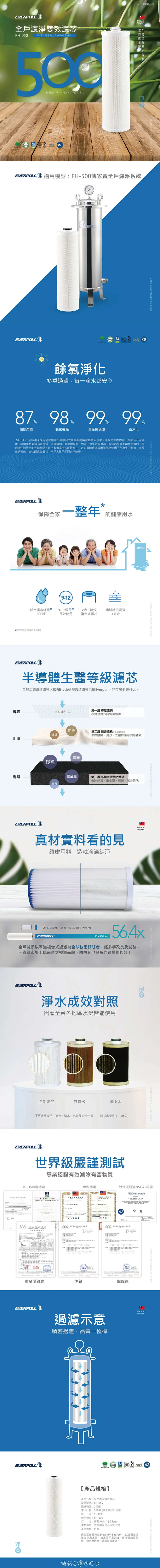 品牌:EVERPOLL愛科濾淨 種類:雙效複合式濾芯 容量(ml):濾 水 量:500噸 (依水質狀況而定) 最高耐熱溫度:65℃以下 產地:台灣 濾芯型號:FH-050 濾芯壽命:依使用狀況及水質而定 過濾精度:1微米 適用:FH-050全戶過濾、頂樓水塔、大樓過濾 商品長度超過超商包裝尺寸,只能宅配,請見諒!