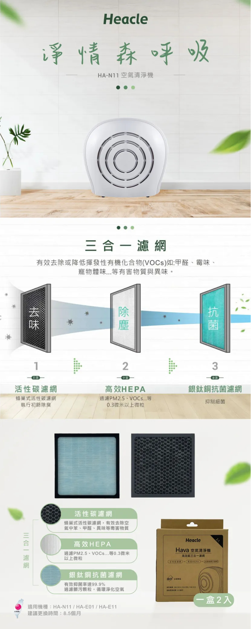 Heacle空氣清淨機 3合1複合濾網(一盒2入)