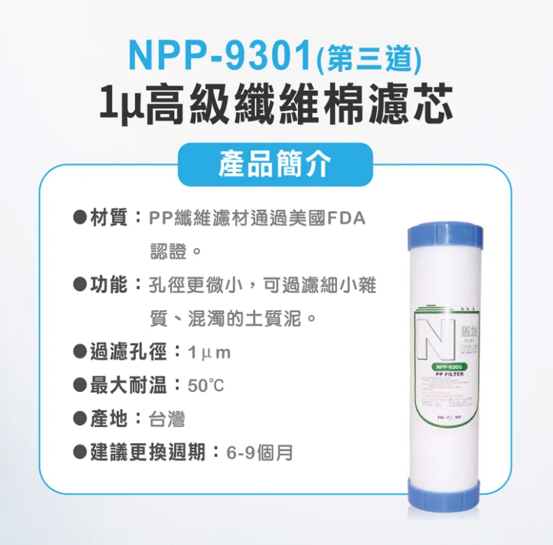 N系列-NPP-9301-1μ高級纖維棉濾芯(第三道)