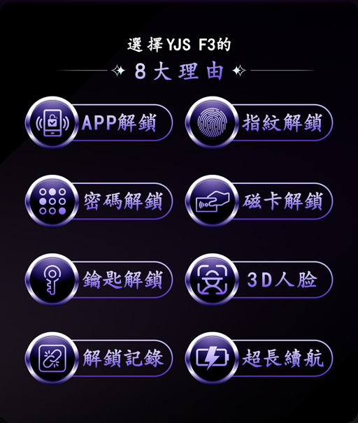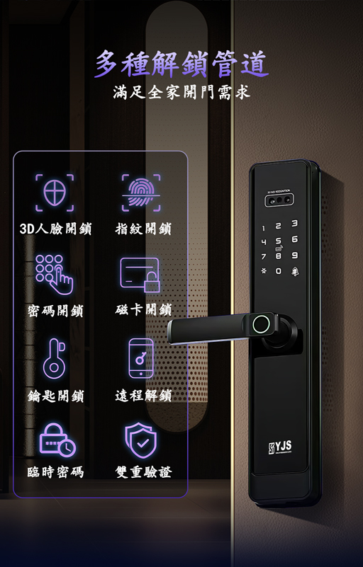 首頁/品牌電子鎖/YJS/YJS F3人臉電子鎖 🔍 YJS F3人臉電子鎖NT$25,500 台灣YJS F3 解鎖方式: 人臉:100組 指紋:100組 密碼:100組 卡片:100組 鑰匙:2把 藍芽:10組 遠端 (WIFI解鎖)加購 描述 相關商品 YJS S1 人臉雙攝電子鎖 NT$36,500 YJS W1 人臉電子鎖 NT$31,500 YJS T1 人臉電子鎖 NT$29,500 YJS Z1 NT$19,500