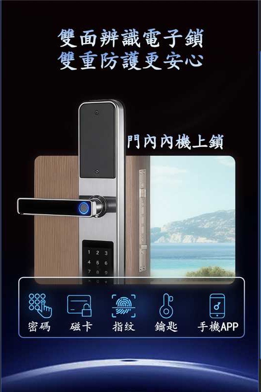 首頁/品牌電子鎖/YJS/YJS M9S雙面辨識電子鎖 🔍 YJS M9S雙面辨識電子鎖 台灣YJS M9S 雙面辨識電子鎖 解鎖方式: 指紋:100組 密碼:100組 卡片:100組 鑰匙:2把 藍芽:10組 遠端 (WIFI解鎖)加購 描述 相關商品 YJS F3人臉電子鎖 NT$25,500 VOC CP1電子鎖 NT$19,500 YJS H2雙直立勾鎖 NT$16,500 YJS T1 人臉電子鎖 NT$29,500